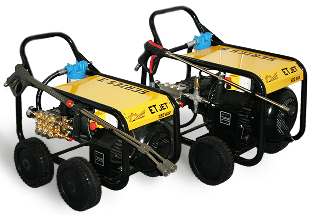 Компактные аппараты ET JET среднего давления являются универсальными помощниками в сфере очистки поверхности. Благодаря небольшим размерам и высокой производительности незаменимы при работах по очистке легких загрязнений без разрушения защитных покрытий, а так же применяются для щадящей гидроабразивной очистки средних объёмов работ. Аппараты с большим расходом воды применяются для прочистки труб и очистки емкостей от различных загрязнений.